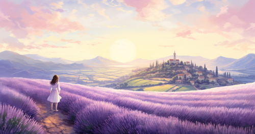 dreamy lavender field, soft rolling hills, and a touch of whimsy in the air --ar 9921:5197