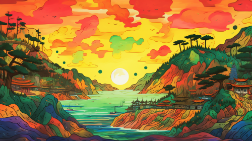 design a youtube banner, a world map, created using Korean landscape fauvism art --ar 16:9