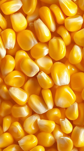 A vibrant, modern image of cracked corn kernels designed for animal and poultry feed. The corn should be depicted with bright, fresh colors and a clean, polished look. The background should be minimalistic and bright, using light, airy colors to create a contemporary feel. Emphasize the texture and clarity of the corn, highlighting its suitability for modern feed solutions. --ar 9:16