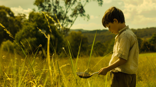 Illustration: A cute bear is planting rice,Thailand watercolor--ar 1:1 --v 6.0