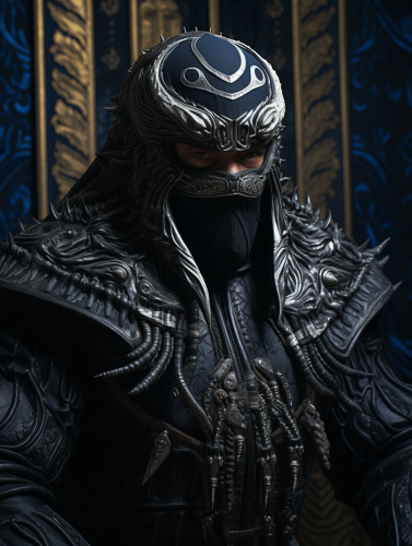 A hyper-realistic, cinematic depiction of Venom from the film, dressed in Kazakh clothing. Key elements: IMAX quality, 4K cinematic detail, hyper-realistic texture, dramatic lighting, cultural blending, intricate fabric detail, hyper-realistic style, dynamic atmosphere --ar 3:4 --v 5.2