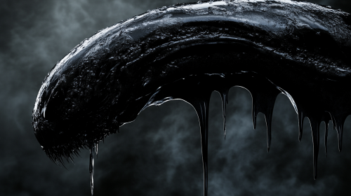 sideview upclose profile view of venom, 55mm Hasselblad full frame medium format, national geographic photograph, dripping black liquid on a dark smoke background --v 6.1 --ar 16:9