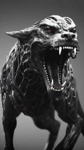 Fierce dog with Venom iconic black and white symbiote design, realistic depiction with sharp focus and intricate details, soft natural volumetric cinematic light, trending on ArtStation, --ar 9:16 --v 5.1 --s 750