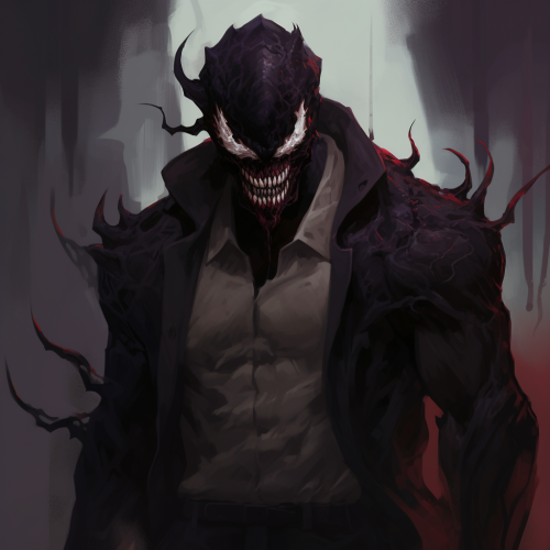 Gangster Venom, Shadow. Male. Portrait. --style 3fsE3uZyG4D --v 5.2 --no guns