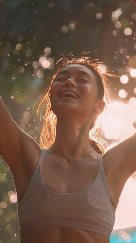 An animated transformation sequence showing a gradual change from tired and bloated to energized and healthy. The background transitions from dark to light to symbolize the positive journey of transformation., cinematic background and lighting, realistic, --ar 9:16 --relax