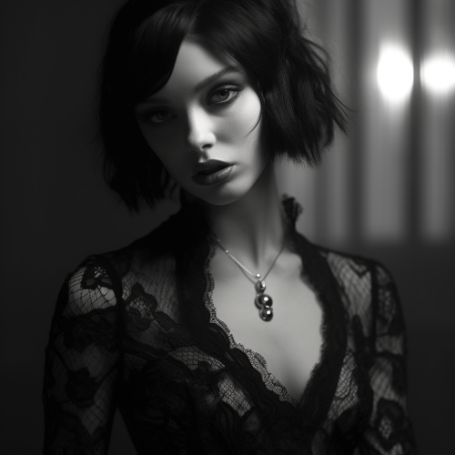 beautiful goth girl young black and white 4k ultra realistic hyper real portrait shot diss ray tracing dynamic lighting