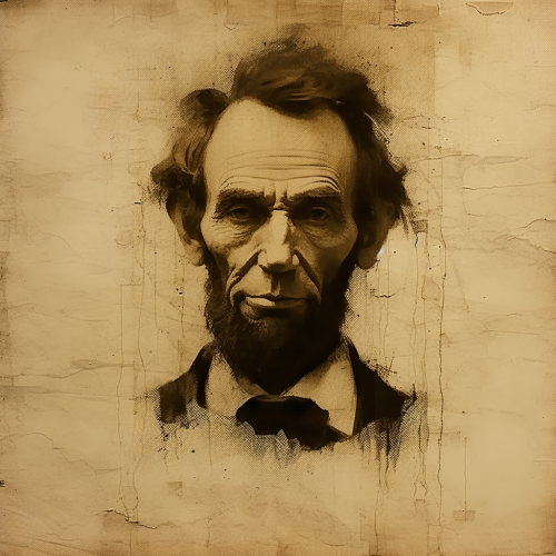 create abraham lincoln currency portraits, black and white, use fine lines and cross-hatching to create shading and texture, white background