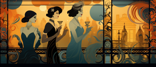 art deco in the 1900s style fashion smoking weed, city London in the style George Barbier Fashion Beauty NO TEXT, Vivid colors --ar 7:3 --v 5.2 --style raw --s 250