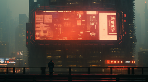 1980s computer graphics style - skycraper billboard in Blade Runner 2049 --ar 16:9