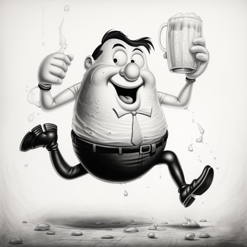 Vintage 1950s animation character sheet, sketch style, black-and-white line drawings, primary character is a wapuu, various cartoon characters with exaggerated expressions and poses, labeled scene numbers, simple and stylized design, characters interacting and holding objects, nostalgic cartoon style --v 6.1 --s 50 --ar 16:9