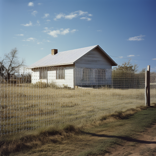 Movie poster for a western thriller film called HOMESTEAD using a Hyperrealistic Film still of a small 1800s homestead farmhouse on fire surrounded by large cowboy posse with guns drawn, the silhouettes of four different women visible through different windows of the farmhouse, epic, scary, thriller, nighttime, Directed by Katheryn Bigelow. Style of Andrew Wyeth. Cinematic. Color. 32k. --style raw --ar 16:9