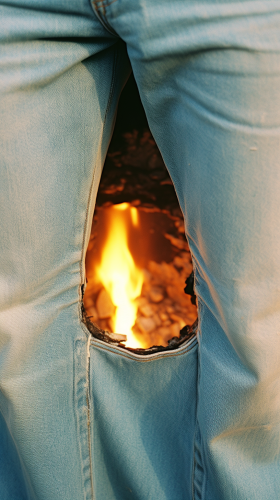 holes being burned in your jean pockets, tight shot, shot on contax g2, portra 400, retro print ad --ar 9:16