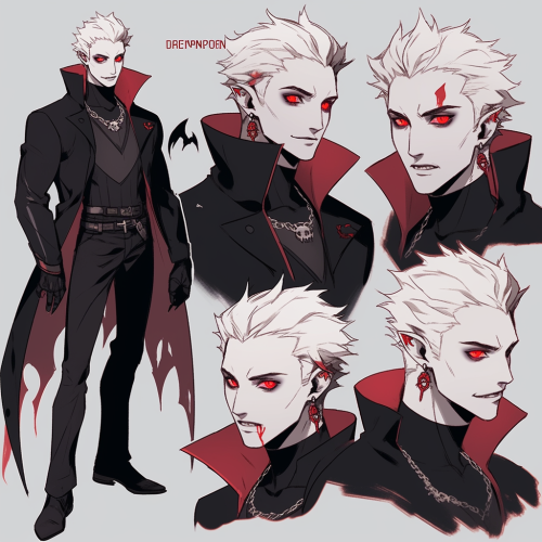 adopt, adoptable character, male human, adoptable character sheet, multiple poses of same character, male human, vampire goth in the style of johnny depo, slightly white skin, concept art, dynamic posing, detailed concept art, cinematic lightning, --niji 5