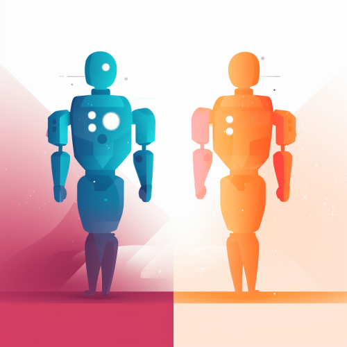 0xBot logo depicting a robot lifting a human figure towards a mountain peak, representing achievement and support, the '0x' symbol subtly included in the background, dynamic composition with bold colors, illustration, inspirational artwork, --ar 1:1 --v 5.0