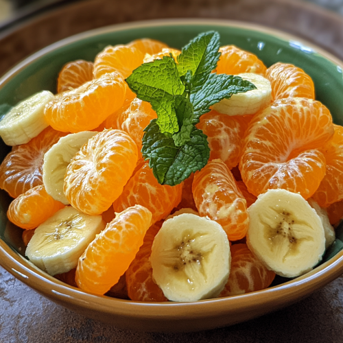 Close-up of a bowl of orange creamsicle fluff dessert. The dish is a creamy, fluffy mixture with small mandarin orange segments and mini marshmallows scattered throughout. A swirl of whipped cream is placed on top as a garnish, adding a soft, airy touch. The light, pastel orange color of the fluff contrasts with the bright mandarin oranges and the white marshmallows. The background shows a blurred countertop, keeping the focus on the refreshing and indulgent dessert