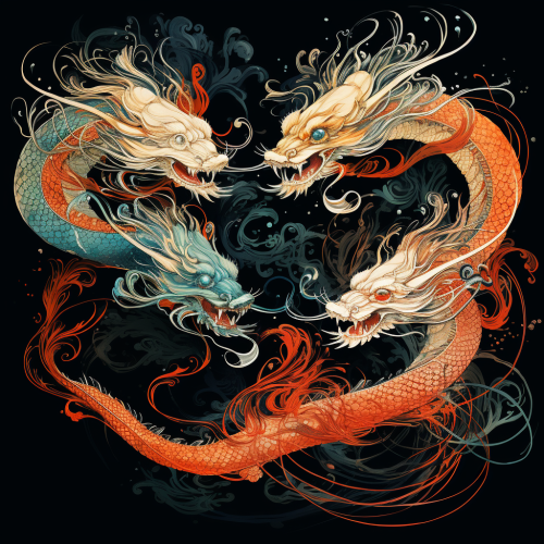 png white background, stars and smoke and a moon and dragons flying, in the style of vintage illustrations, full body, text-based --style raw --ar 1:4