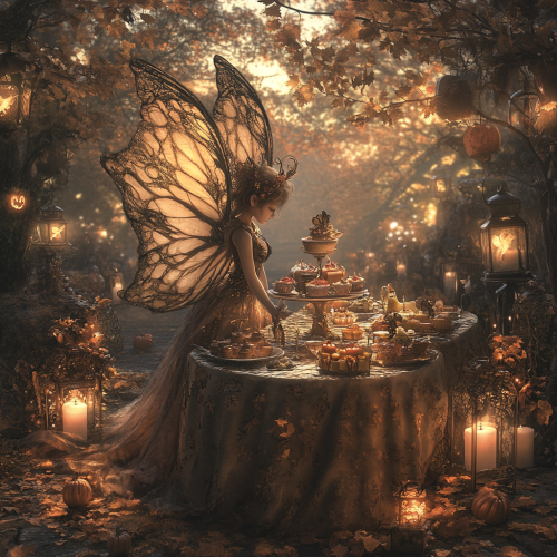 an altar made of wicker and lusicous spring flowers of pink, orange, yellow and greenery. The altar is adorned with sea shells, lace, berries, cakes, teapots and tea cups, tarot cards, colourful crystals and candles. It has a sophia coppola foes mad hatter's tea party vibe. Shot with a 90s fujifilm disposable camera. --ar 3:4 --v 6.1