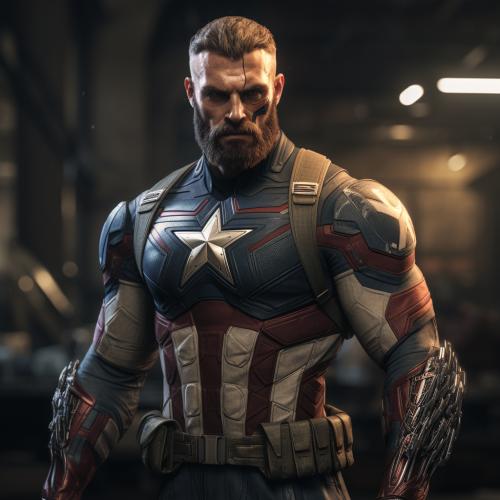 "A heroic superhero inspired by Captain America standing proudly in a cinematic 16:9 format. He wears his iconic red, white, and blue suit, with a large star on his chest and stripes along the torso. His round, indestructible shield with a star in the center is prominently displayed, either held in front of him or attached to his back. The background features a dramatic, war-torn landscape with a cloudy sky, and rays of light breaking through to illuminate the hero. He stands firmly on a rocky surface, exuding strength, leadership, and determination, ready for battle." --s 750 --style raw --niji 6