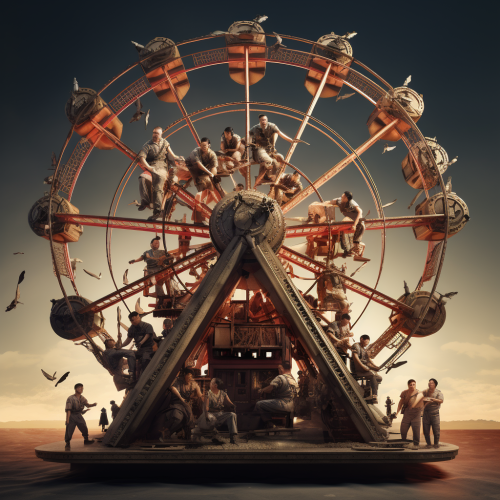 hyper realistic photograph of a Chinese tactical Ferris wheel with soldiers and weapons attached to it,