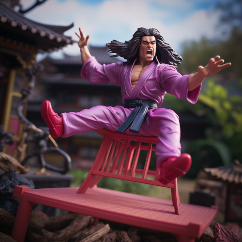 1975 Japanese bootleg toy of dojo master, injection molded, low detail sculpt, no moving parts, low detail, crude painting, Japanese plastic toy action figure on white background --v 5.2