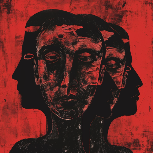 make design using human faces, primitive shapes and some other easy to draw forms. composition and layout must be mathematically balanced but there may be some exceptions. blend human faces and shapes. fill them with solid colors or basic gradients. there must be strong contrast in colors --ar 9:16