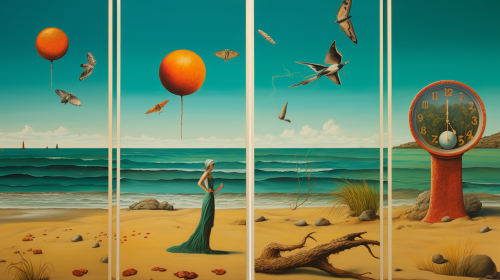 A classic editorial style advertisement, image displaying coastal sandy beach landscape in midsummer, green coral waters, waves, palm trees, 6pm sun, intricate details, photo realistic,cinematic lighting, 16K resolution, vivid, octane rendered elements, panoramic view, award winning photography, view from a close distance, shot on Arri --ar 16:9 --v 6.0