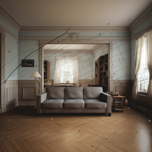 living room has a background layer like a dotted graph to indicate fault lines