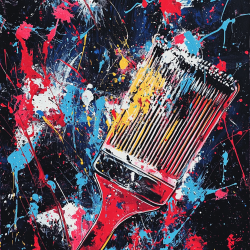 Can you create me some clippers, comb, brush, barber logo. paint splatter, drip, and splash in Abstract Expressionism. Super detailed, Chiaroscuro, contrasted. Smooth