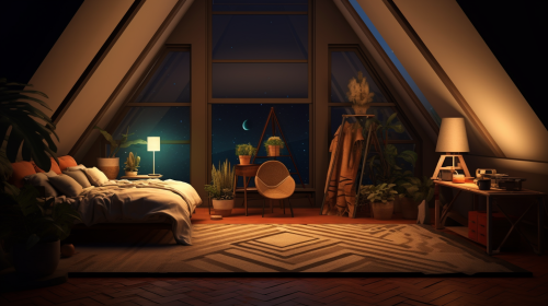Warm sunlight through window casts tranquil room glow.