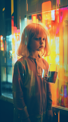 A little girl looks in the mirror and sees the beautiful world, glitch art, --ar 9:16