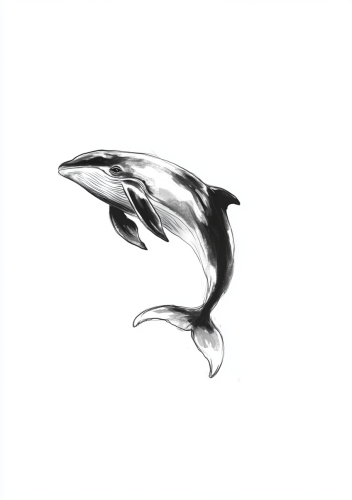 Illustrations from American animated films. Baleen whale. Only one whale is shown in the center. In the sea. A small group of sardines is shown on the left. Coloring pattern. Black and white.