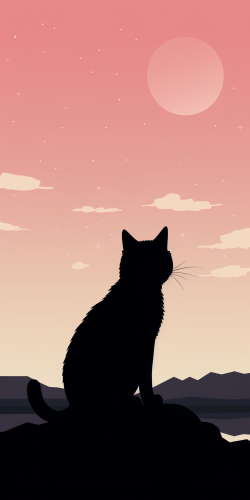 illustration of cat and sky background, in the style of light pink and dark gold, contrasting light and dark tones, delicate markings, animated gifs, wiccan, minimalist collages, colorful drawings --ar 2:4
