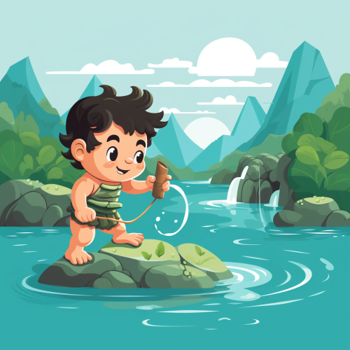 baby hercules wrestling a river, cute illustration, flat vector art style