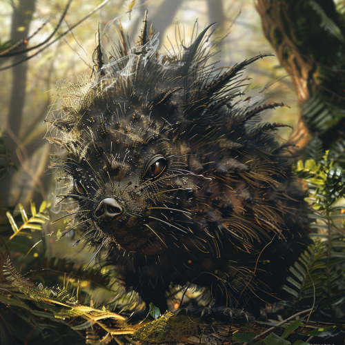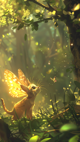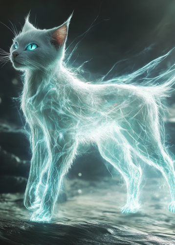 A sleek, cat-like creature with a body that shimmers and changes color based on the surrounding light. Its fur looks like shifting mist, making its outline difficult to distinguish. It has elongated, graceful limbs with delicate, crystalline claws that glint in the light. Its face is sharp and angular, with reflective, mirror-like eyes that capture and reflect entire landscapes. Glimpsebeasts seem to disappear and reappear as they move, as though they slip between realities, fantasy art style --ar 63:88