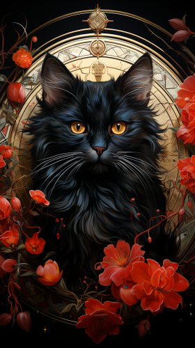 chinese zodiac, time, black cat and rabbit, --ar 9:16 --s 750