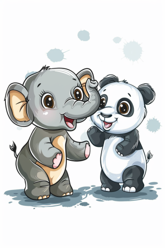 cartoon style image of an elephant and a panda playing around --ar 2:3 --v 6.0
