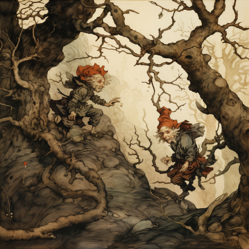 A full-length fairy tale character, from a fantasy world, in his fairy tale atmosphere, against a fairy tale forest background, 10% fog, 5% rossa, render 16k,helowen --style raw