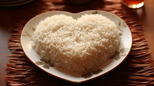 Heart shaped risotto on minimal plate top view --ar 16:9
