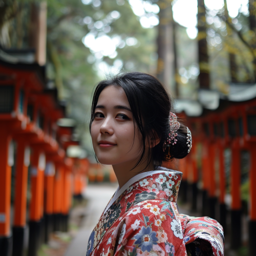 Photograph a beautiful woman in Tochigi, Japan. She is sightseeing at Nikko Toshogu Shrine. Her age is 30 years old. Please take a picture so that her whole body can be seen,Realistic,hyper quality --v 6.0