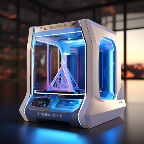 In a brightly lit, green office space, a person is using an energy-efficient printer with a label indicating its low environmental impact. Beside the printer, a stack of recycled paper is prominently displayed. Above, a digital display shows a tracker of reduced carbon footprint due to eco-friendly printing practices. In the background, a small potted plant symbolizes the commitment to environmental care. The overall scene conveys the harmony between technology and sustainability. --s 50 --v 6.0
