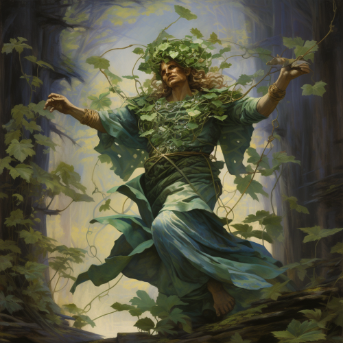 a spring diety, he revels playing his fey pipes, he is green and his toga is made of green leaves, Fey diety named the green dancer