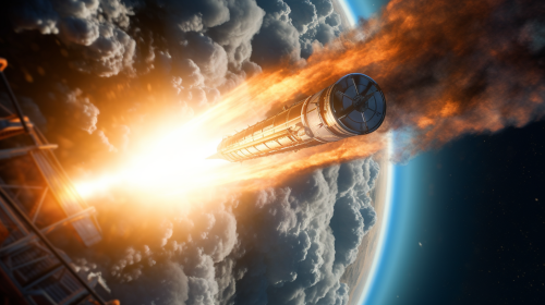 rocket made from colorful lego blasting off from cape canaveral ultrarealistic epic atmosphere --v 5.2 --ar 3:2 --no text --no people