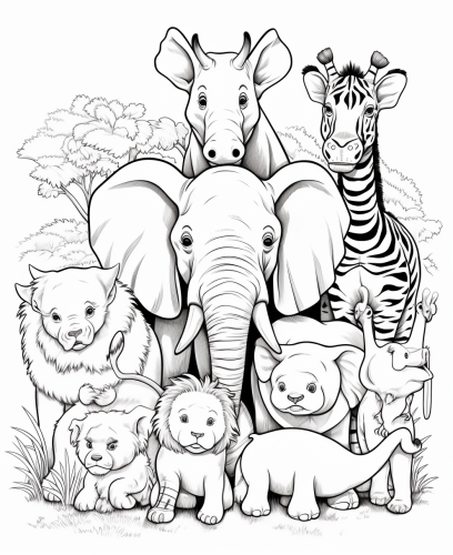 Create an image with multi figures, 2 men and 4 women, with wild animals, muted colours, large forest landscape, dark moody, hype realistic, 4k, ultra HD, hyper detailed faces. large flowers in a wooded forest environment, dark environment, old master poses, old master large group painting.