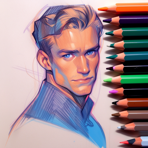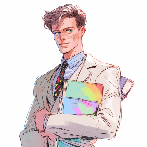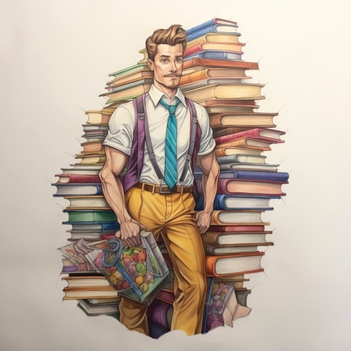 ?️?, rough colored pencils sketch, gay male college professor in the school library, he's carrying a few books, inspired by willem dafoe and tom daley and richard madden, style of zach lynch, wally wood, jc leyendecker, leonid afremov --niji 5 --style expressive