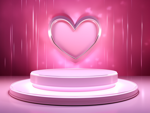 The stage podium is decorated with heart-shaped lighting. Pedestal stage with platform for product, advertisement, show, award, winner on pink background. Valentine's Day. Minimum. --ar 4:3 --v 5.2