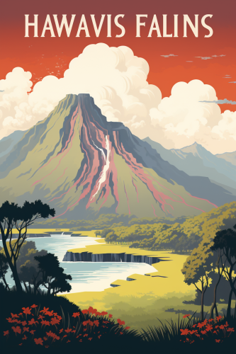 vintage style travel poster for Hawaiʻi Volcanoes National Park, retro colors --ar 2:3 --v 5.2