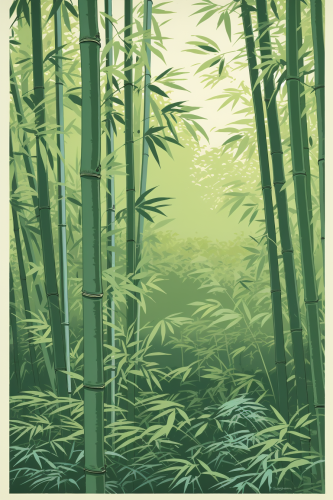Vintage green pastel colors travel poster Japan Bamboo Panda --ar 2:3