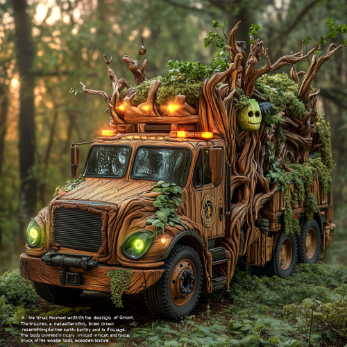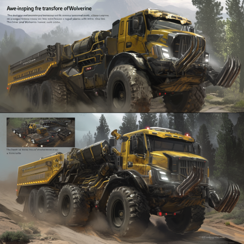 "An awe-inspiring fire truck completely transformed with the design and essence of Wolverine. The truck features a rugged yellow and black color scheme, with sharp, aggressive lines that mimic Wolverine’s iconic suit and claws. The front of the truck prominently displays three large, metallic claw marks, glowing with a silvery sheen, symbolizing Wolverine's adamantium claws. The headlights emit a fierce, bright white glow, exuding strength and ferocity. Along the body of the truck, scratch marks and battle-worn details emphasize its toughness and resilience. The truck’s wheels are massive, with claw-shaped rims glowing faintly in silver, as if ready to tear through any obstacle. The body is heavily reinforced, with armor-like plating resembling Wolverine’s indestructible adamantium skeleton. The scene is set in a rugged, mountainous landscape, with mist and debris swirling in the background, giving the truck a wild, unstoppable presence. The truck pulses with a faint, savage yellow aura, symbolizing Wolverine’s raw power, primal instincts, and unbreakable spirit." --s 750 --style raw --niji 6