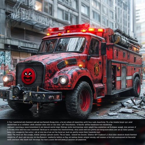 "An awe-inspiring fire truck completely transformed with the design and essence of The Flash. The truck features a striking red and yellow color scheme, with sleek, aerodynamic lines that mimic The Flash's lightning-fast suit. The front of the truck prominently displays a massive, glowing lightning bolt emblem, radiating vibrant yellow energy. The headlights emit a bright, electric yellow glow, symbolizing The Flash’s connection to the Speed Force. Along the body of the truck, lightning bolt patterns race across the metal, giving it a sense of constant motion. The truck’s wheels are massive, with glowing, spinning yellow lightning bolts around the rims, as if charged with super-speed energy. The body is built for speed, with a streamlined design and high-tech components that resemble the advanced technology of The Flash's suit. The scene is set in a dynamic urban landscape, with streaks of light and blurred buildings in the background, as if the truck is moving at incredible speed, pulsing with a faint, rhythmic yellow aura, representing the raw power of the Speed Force." --s 750 --style raw --niji 6