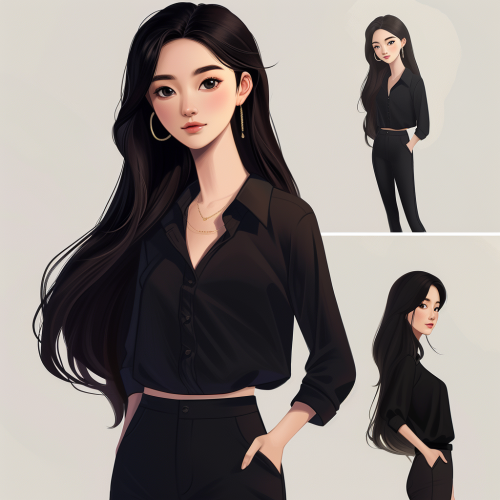 Create an image of an elegant and slender Korean woman, designed with the aesthetics of animation. She should embody grace and poise, with features that reflect both traditional and modern Korean beauty standards. Her attire should be a blend of contemporary fashion with a nod to cultural elements, showcasing a harmonious balance between the old and the new. Her hairstyle should be stylish yet natural, complementing her overall look. The background should be subtly designed, not to overshadow her presence but to enhance it, possibly with elements that suggest a serene or urban setting, depending on what best complements her style. The image should capture her in a moment that feels both candid and thoughtfully composed, reflecting a sense of story or personality. --v 6.0